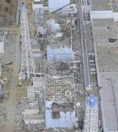 e) En résumé à Fukushima nous avons 3 réacteurs les tripes à l’air depuis plus d’un an (un a été recouvert avec une tente ) , qui subissent chaque semaine des séismes , et qui rejettent dans l’atmosphère et dans l’océan des particules radioactives.